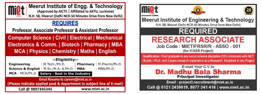 If you're talented, innovative and have the drive to make a difference, then you can surely be a part of faculty at MIET. We're continuously looking for qualified individuals to join our dynamic university. We value every employee's contributions to our university and provide opportunities to support both professional and personal growth.
