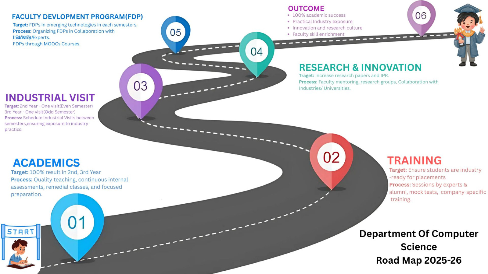 Our Mission is to impart value-based education in computer science, equipping students with the knowledge and skills required to become self-reliant professionals. We are committed to developing competent individuals who can address the evolving challenges in the global tech landscape.