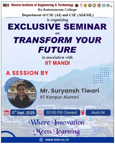 | 1 | 2025-26 | 13-10-2025 | INNOVATIVE & FUTURE TRENDS IN ENGINEERING: A GLOBAL PERSPECTIVE BY Dr. Nilesh Panday ( University of Texas, USA) |
