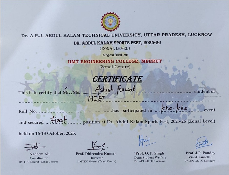 | 3 | 2025-26 | 18-10-2025 | AKTU Sports Zonal - Kho Kho (Gold Medal) |