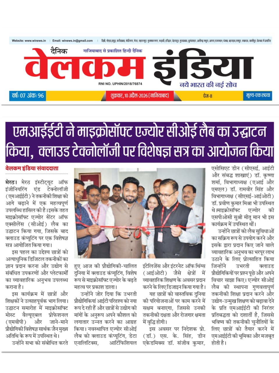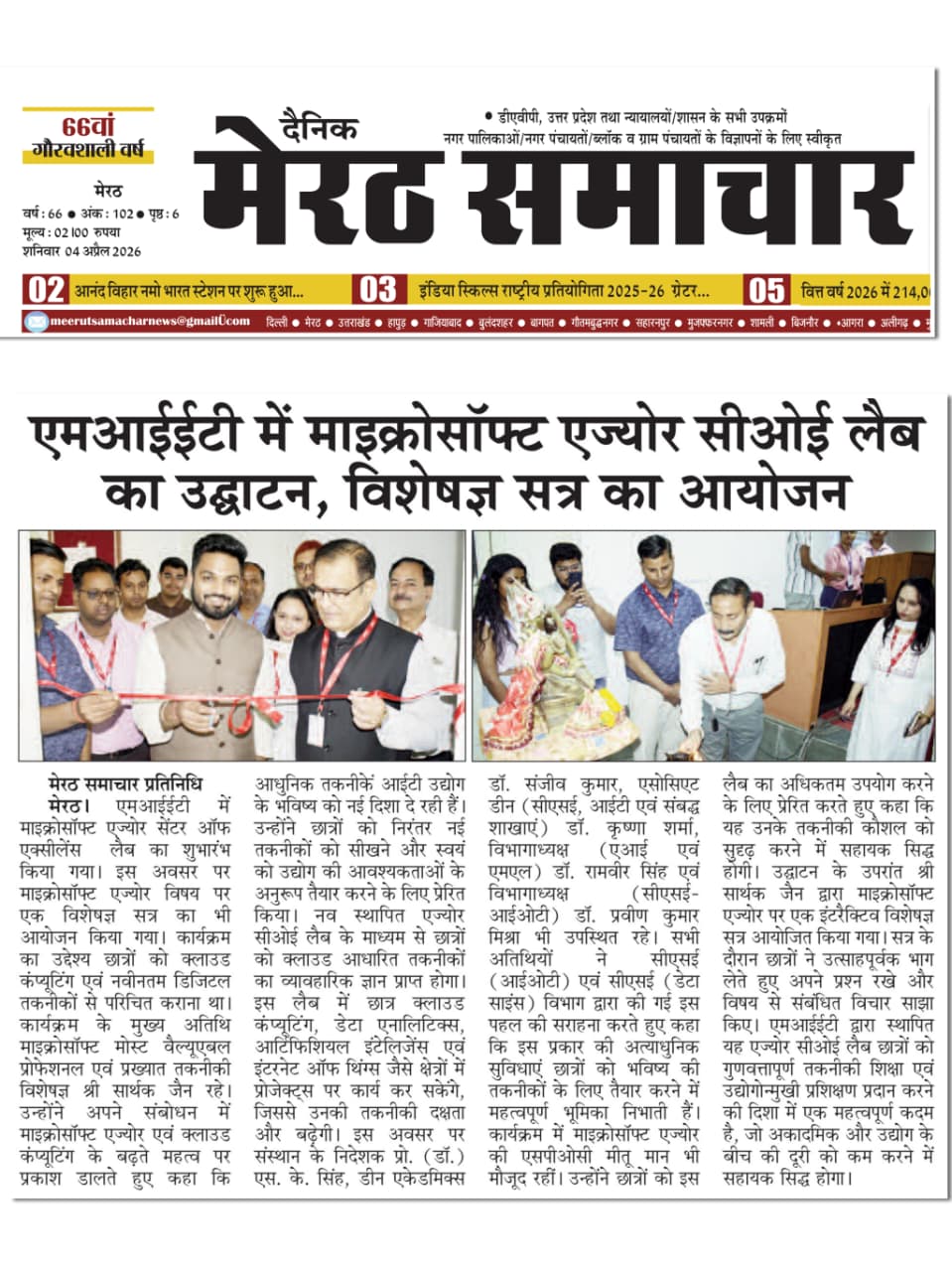 | 1 | 2025-26 | 08-4-2026 | The Inauguration of the Azure Centre of Excellence (CoE) Lab | Department of CSE-IOT | |
