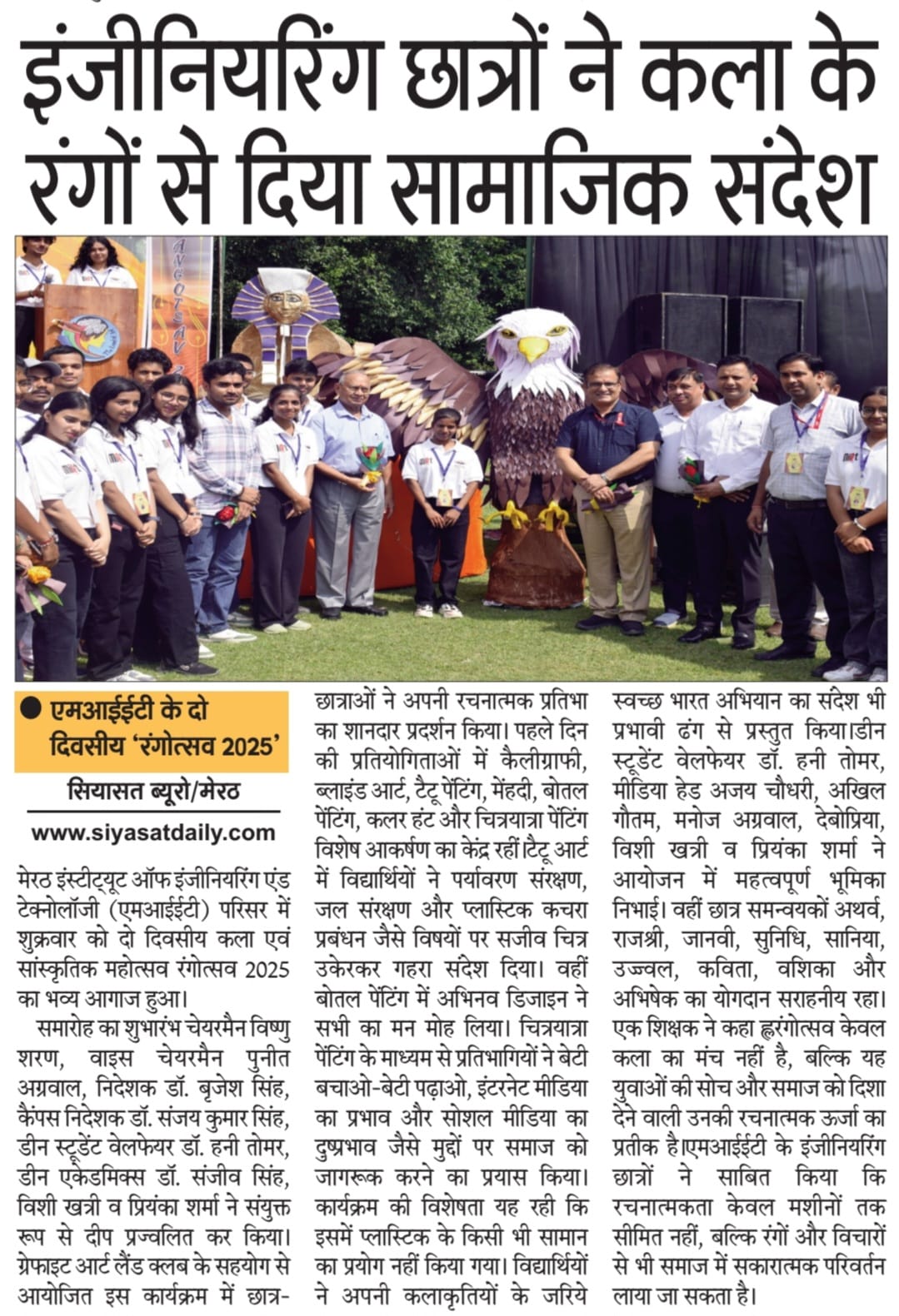 The B.Tech. Department of M.I.E.T. Meerut organized Project Expo 2024