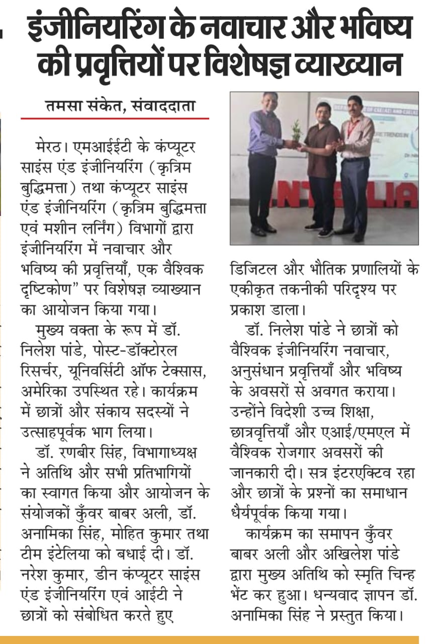Special Guest lecture organized on Quantum Algorithm and Machine Learning at MIET, Meerut