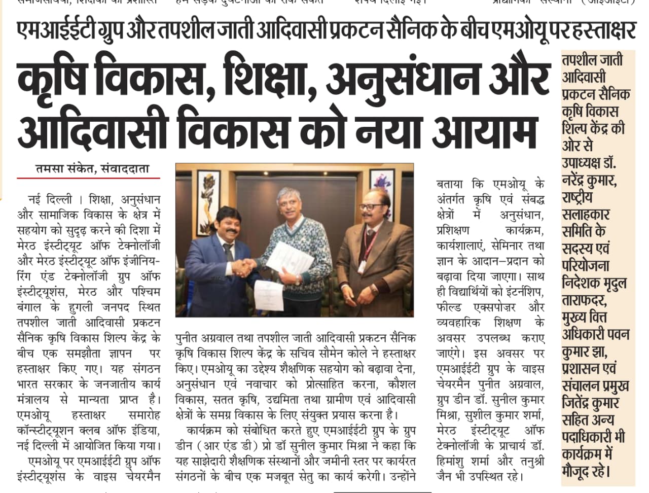 MIET Group signs MoU with Tribal Agricultural Development Organisation