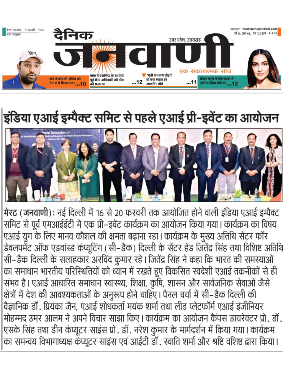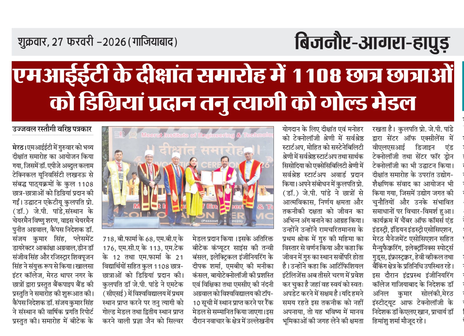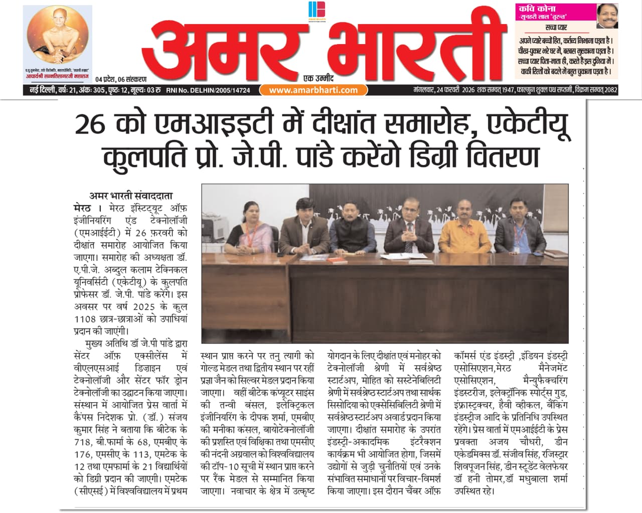 The Convocation press conference received prominent coverage in Dainik Jagran, Hindustan Times, Dainik Bhaskar, Dainik Janwani, along with 13+ leading regional newspapers across Delhi-NCR.