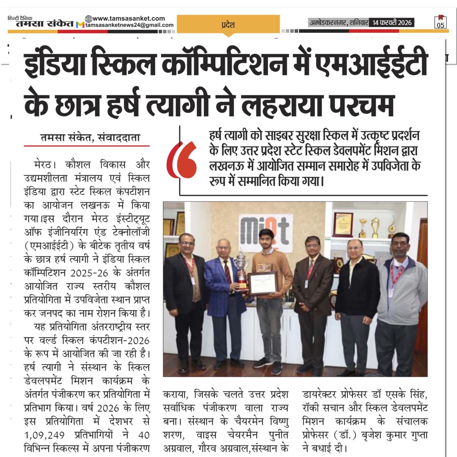 The AI-based initiative of MIET received prominent coverage in leading national and regional newspapers.