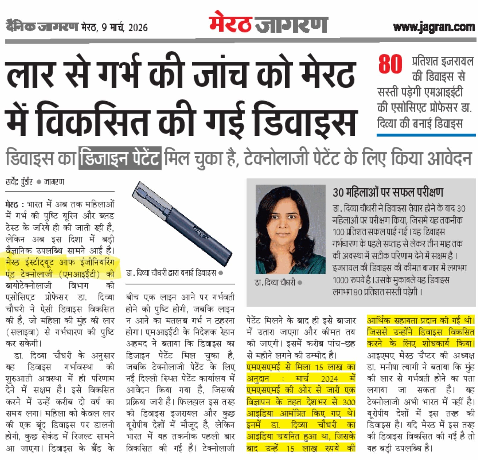 Dr. Divya Chaudhary’s Reserch has been published in all editions of Dainik Jagran.
