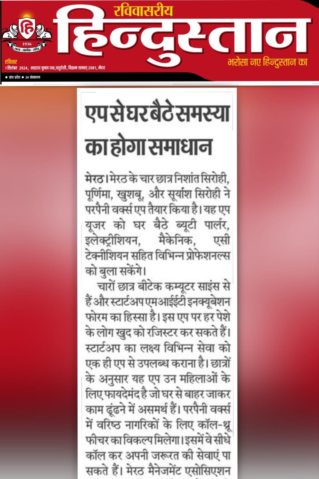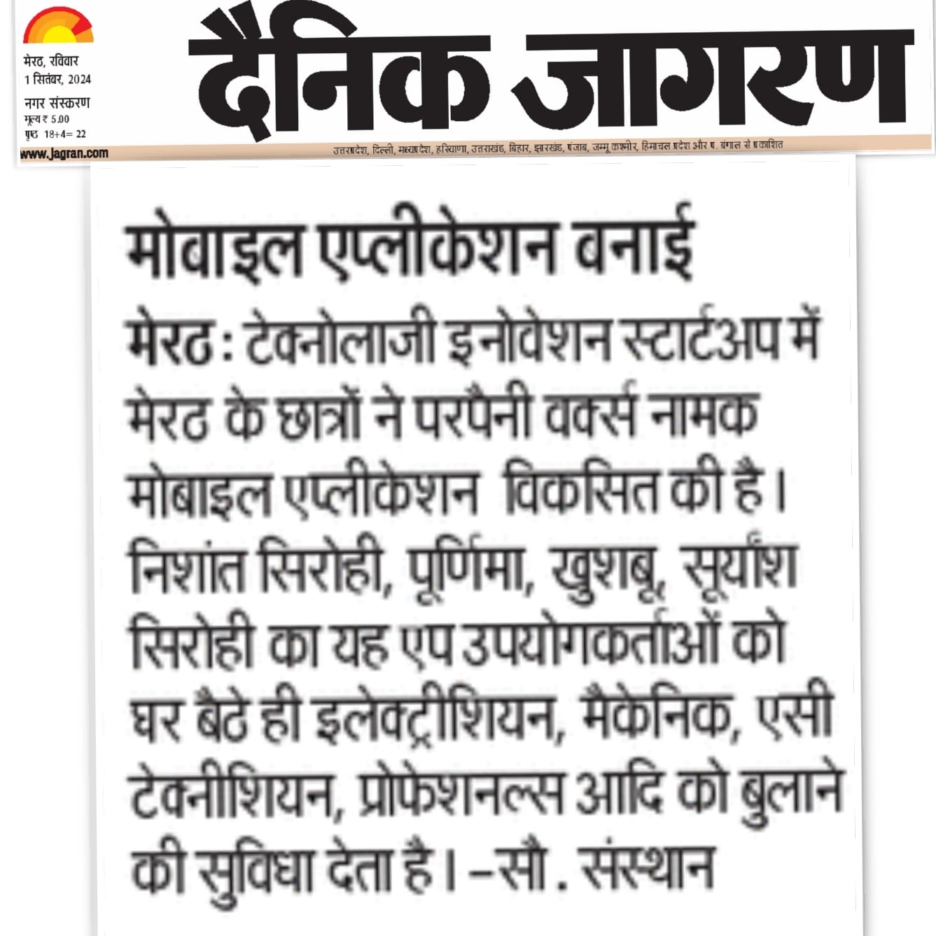 Four students of the B.Tech Computer Science Department MIET, Meerut have developed the Perpenny Works App with the collaborating efforts of the MIET Incubation Forum. Nishant Sirohi, Purnima, Khushboo, and Suryash Sirohi, developed the app through which the user can call various professionals for any services (such as beauty parlors, electricians, mechanics, and AC technicians) from the comfort of their home. Therefore, it aims to provide various services from a single app. People of every profession can register themselves on this app.