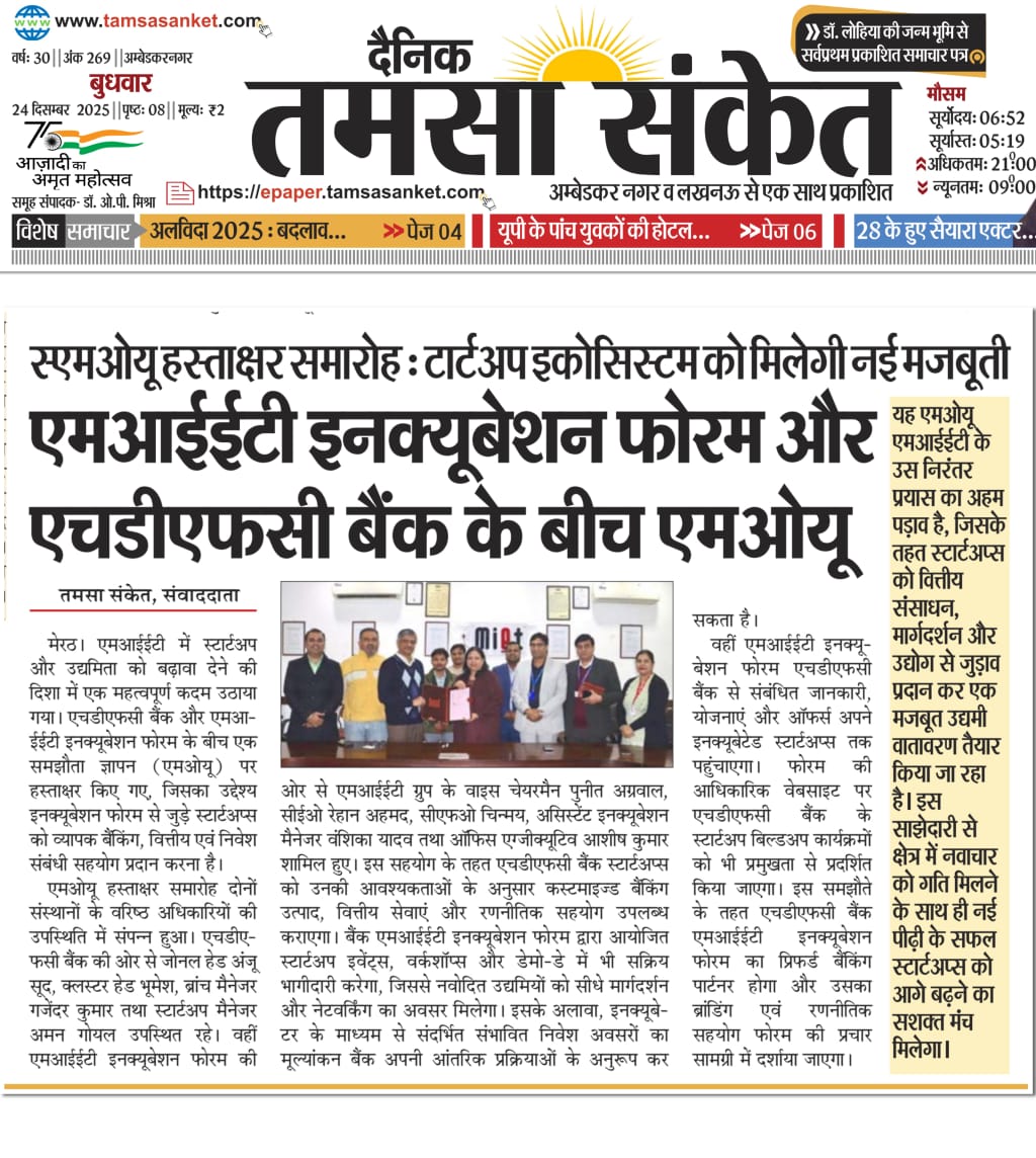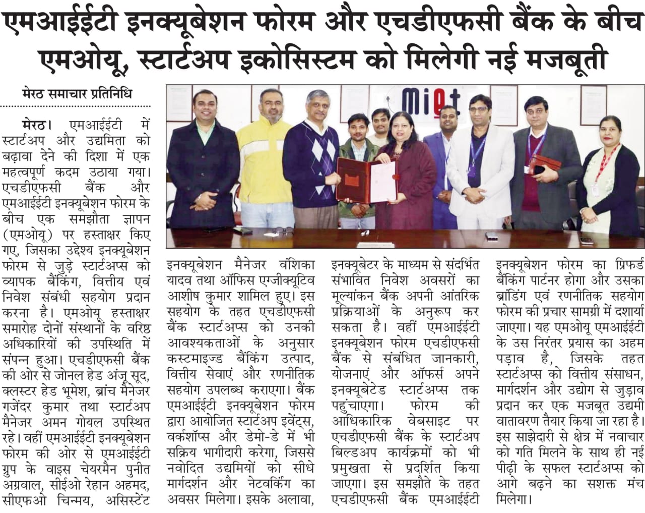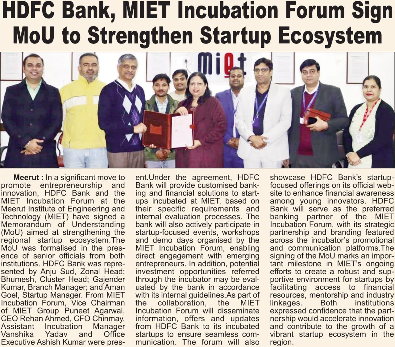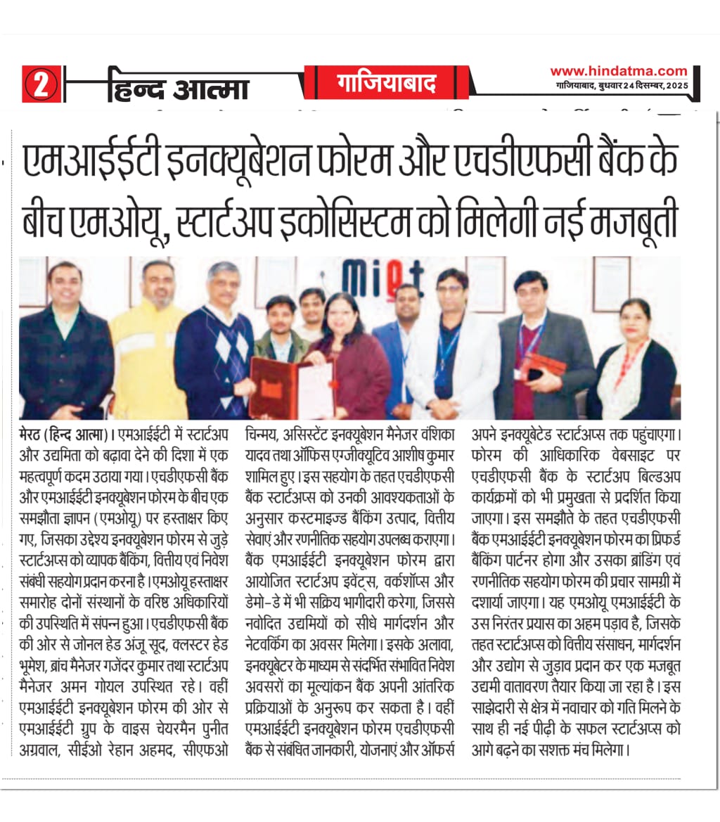 HDFC Bank, MIET Incubation Forum Sign MoU to Strengthen Startup Ecosystem