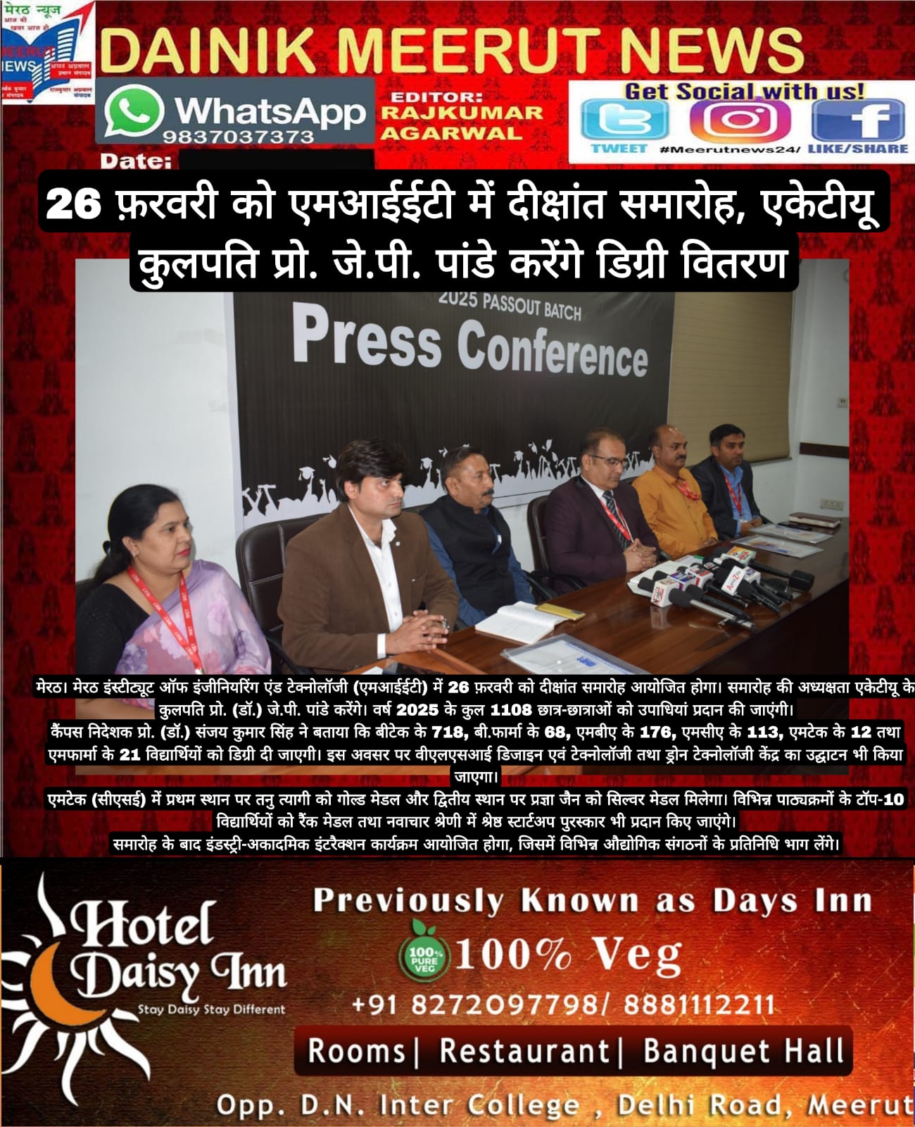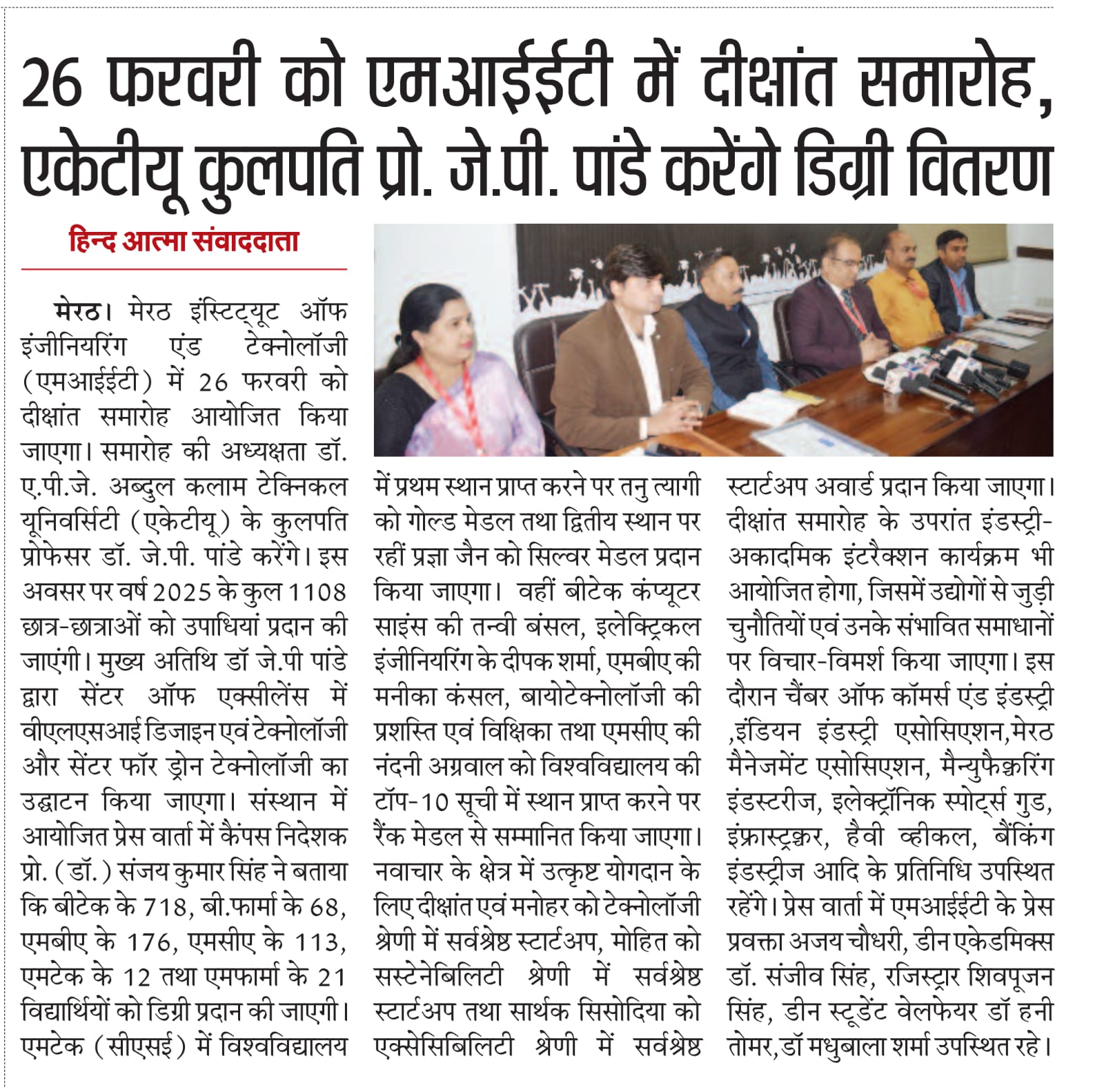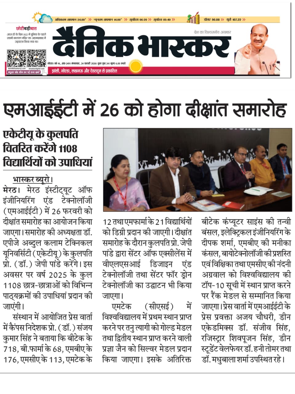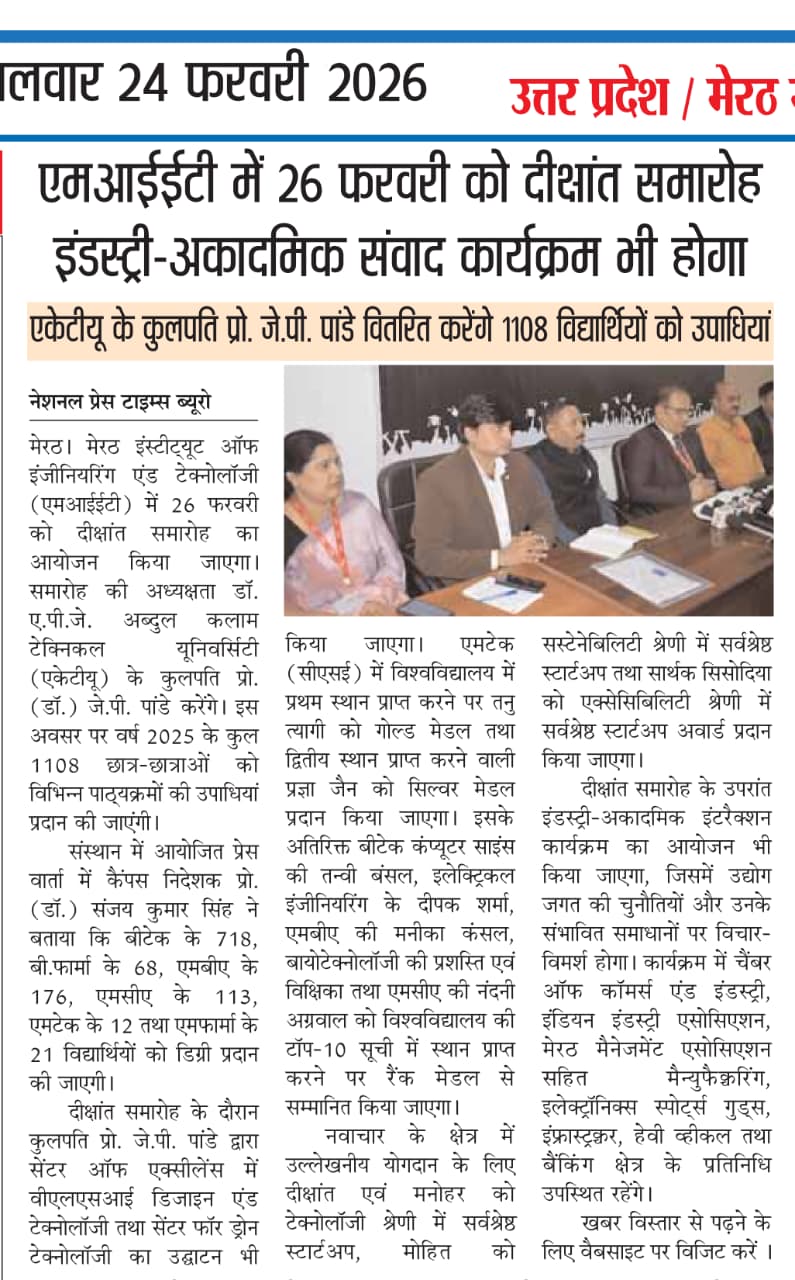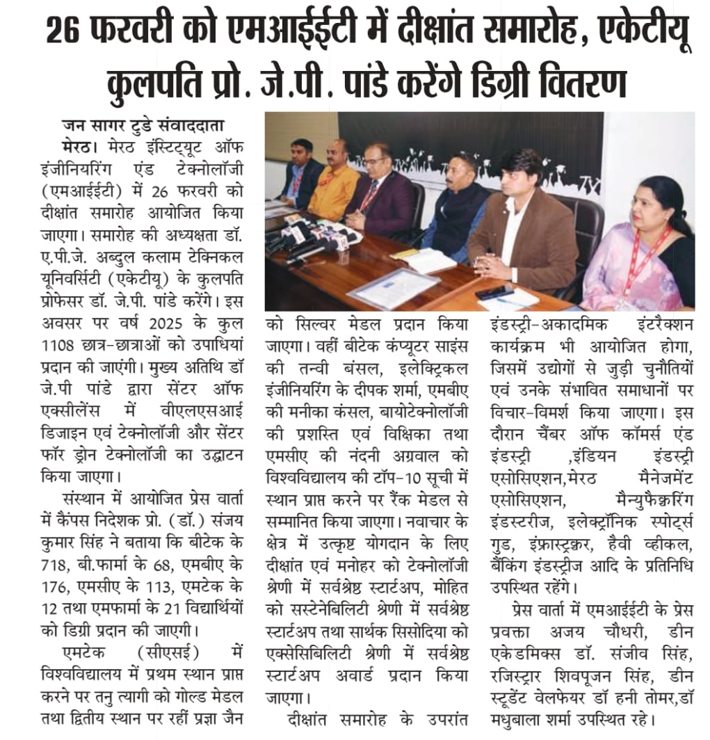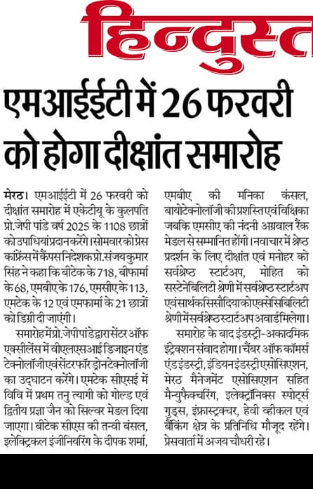 The Convocation press conference received prominent coverage in Dainik Jagran, Hindustan Times, Dainik Bhaskar, Dainik Janwani, along with 13+ leading regional newspapers across Delhi-NCR.