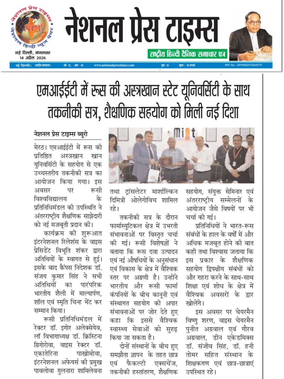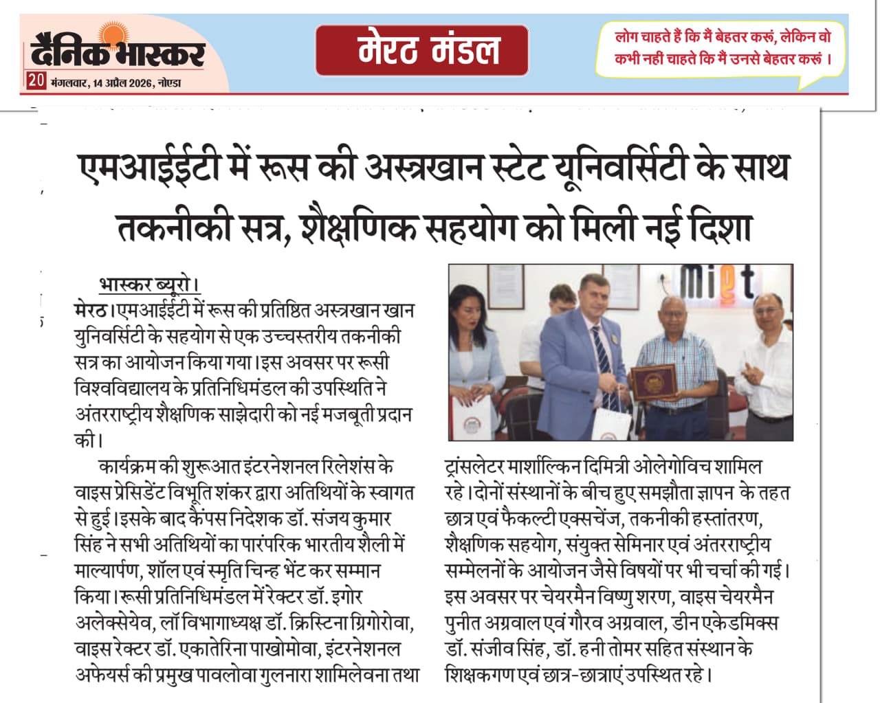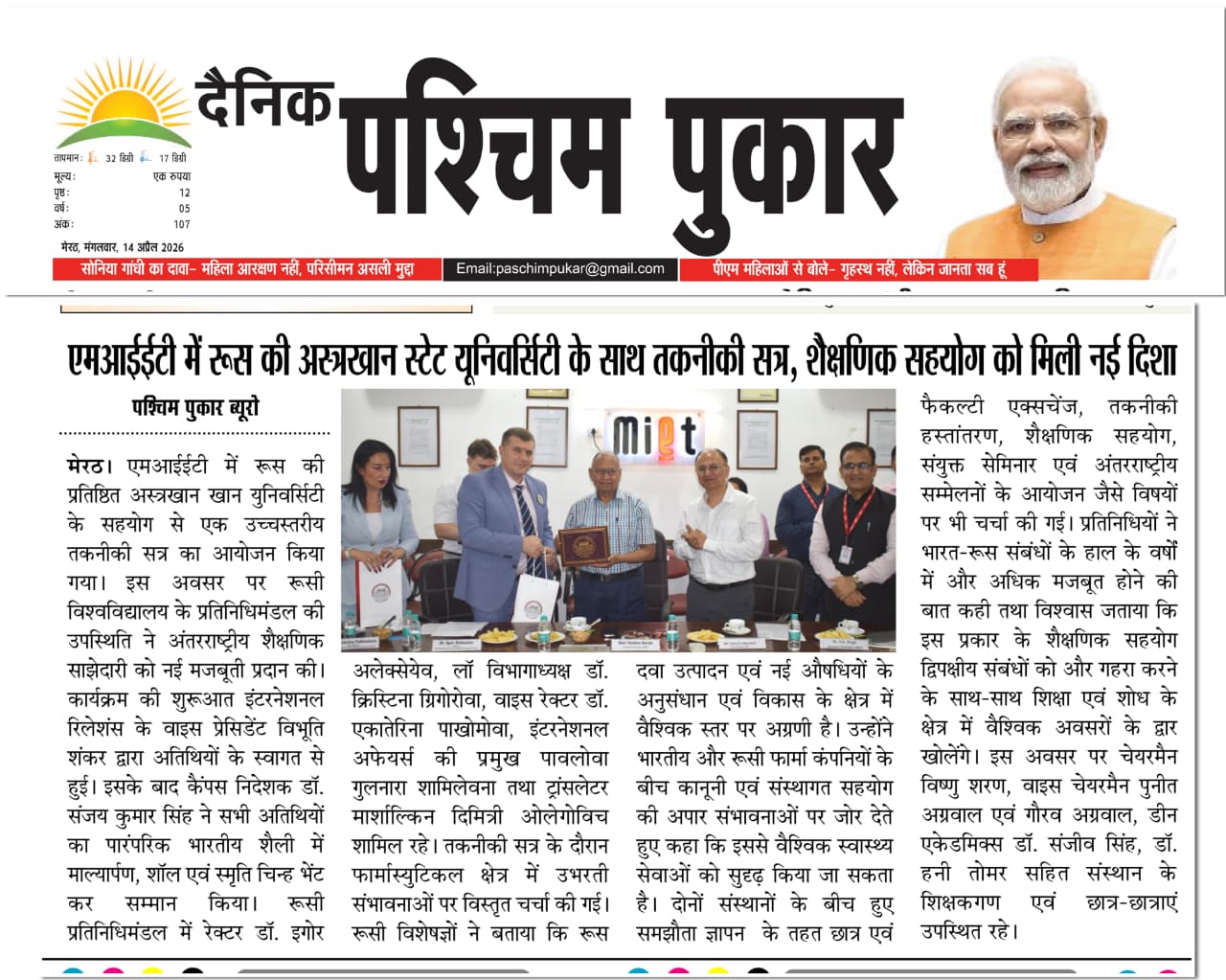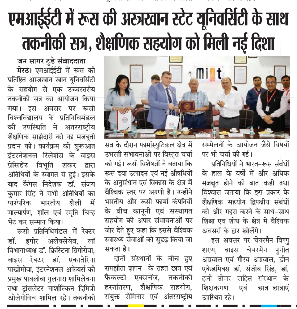 Meerut Institute of Engineering and Technology hosted a high-level technical session in collaboration with Astrakhan State University, reflecting a strong move toward expanding international academic cooperation.